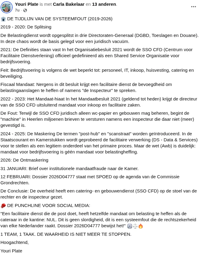 Wat Youri wel ontdekt heeft, dat er een afdeling binnen de belastingdienst is die over de Scanstraat en de posthub gaat, de afdeling SSO CFD. En nu groeit het Youri boven de pet.